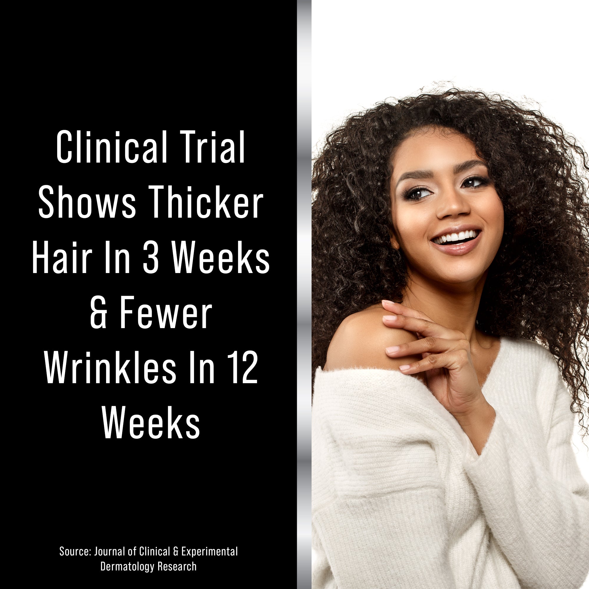 Lustriva Hair Growth Supplement Results - In a 12-week double-blind, placebo-controlled study of 90 women, lustriva increased hair thickness in 3 weeks and reduced facial wrinkles in 12 weeks, while improving skin texture and hair density, as published in the Journal of Clinical & Experimental Dermatology Research.
